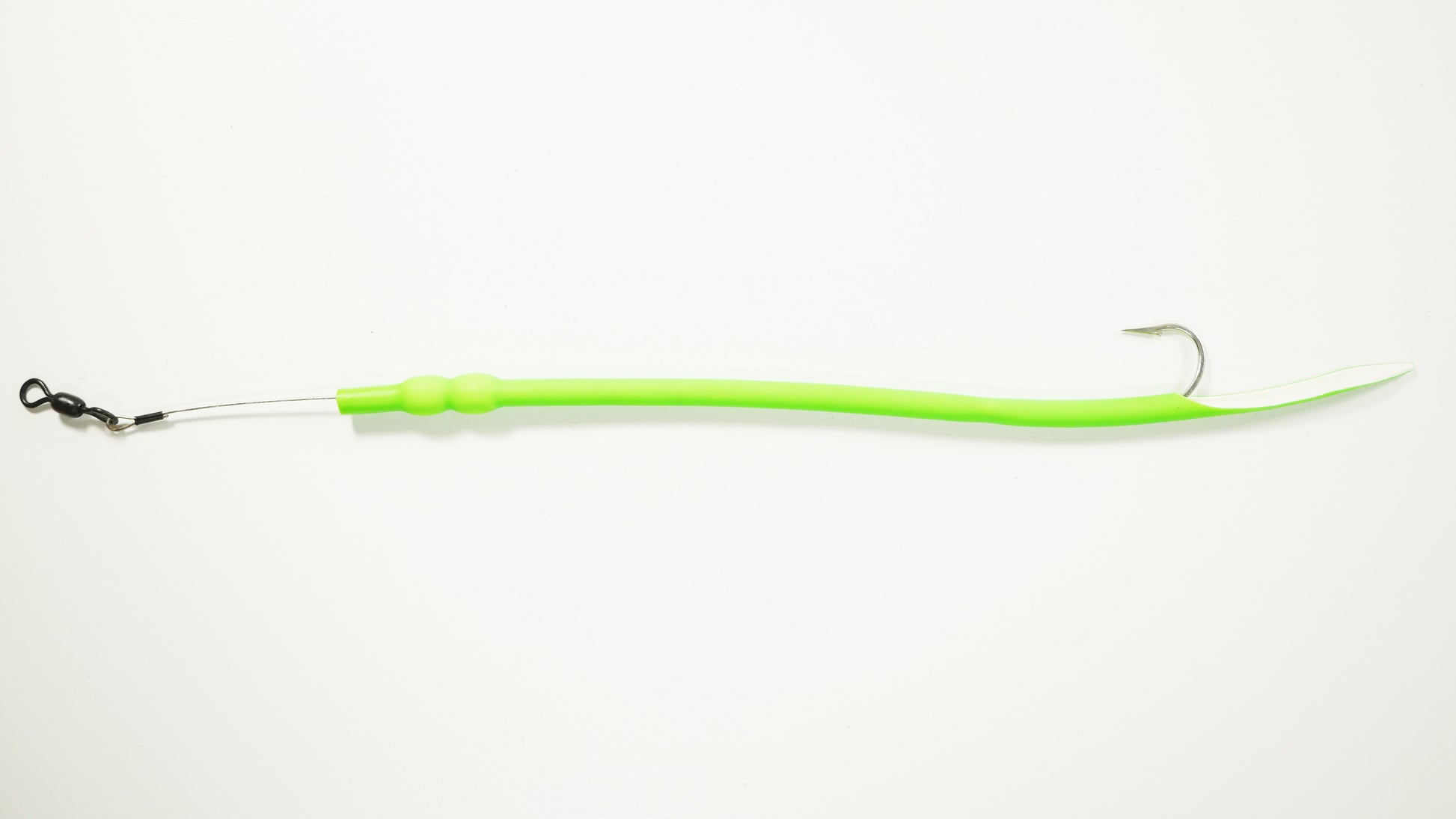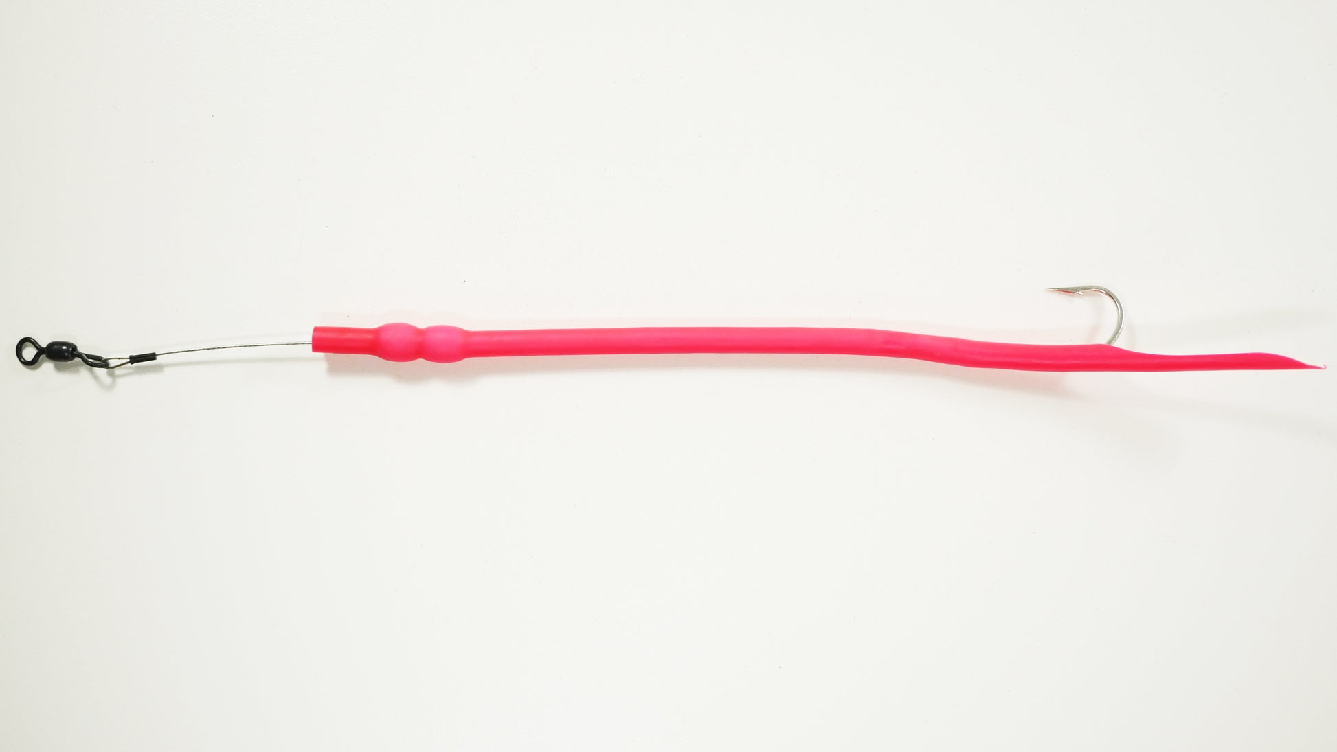 Pro Tips: Keep them curled up when not in use as the action comes from the tube being curved. Scale up leader size to 30-40 lbs as the initial bite can be pretty violent. Also lighten your drag to soften the impact. Vary retrieve from as fast as you can reel to about 3/4 speed. In deeper water, let the lure sink a bit before retrieve.