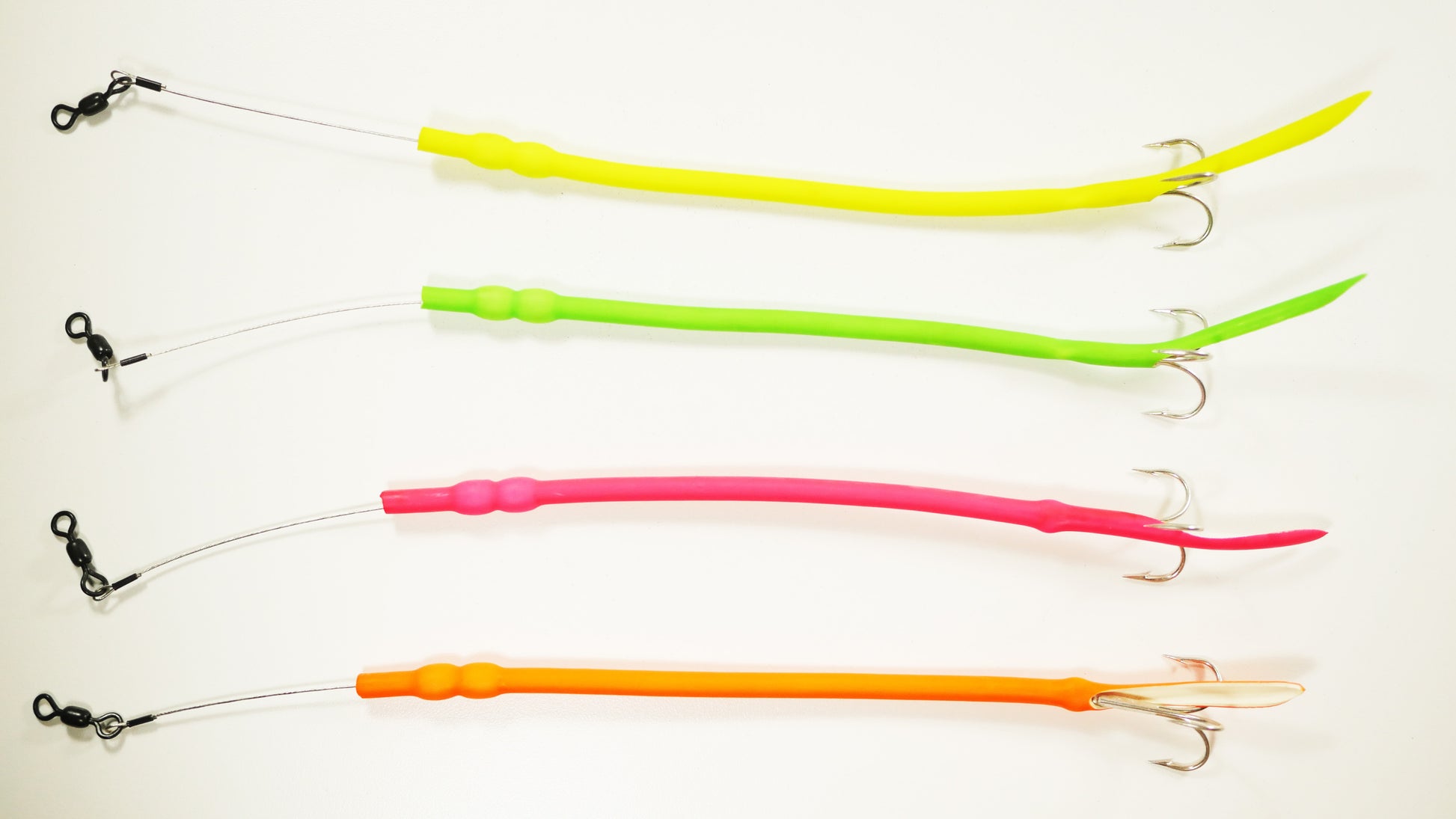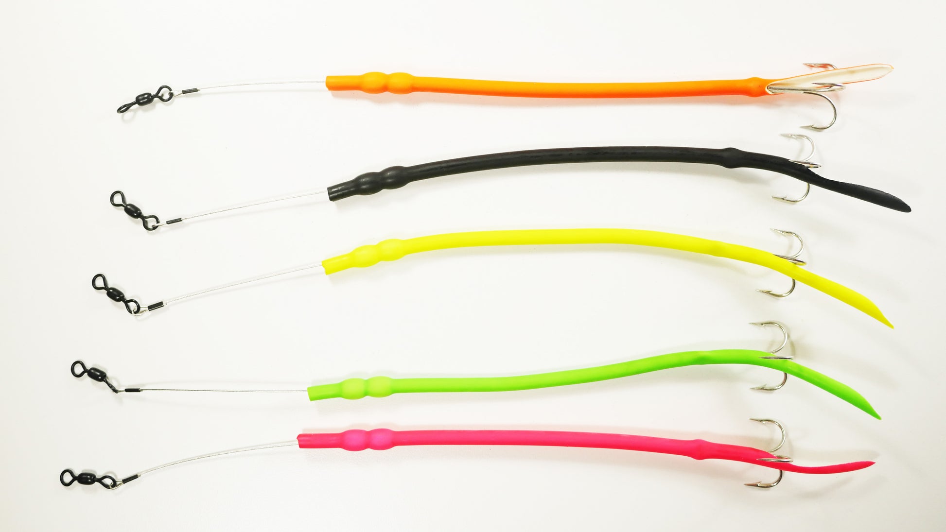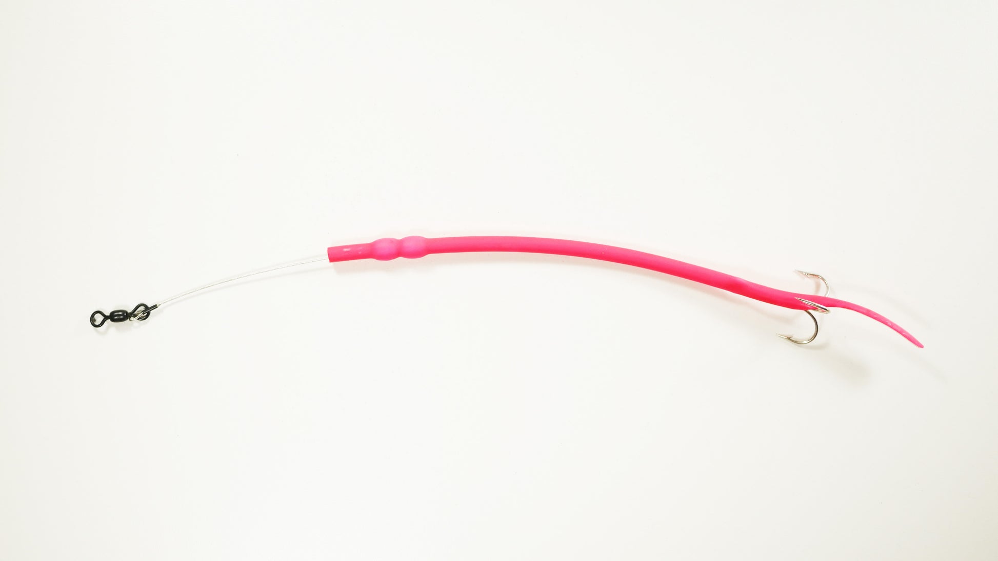 Pro Tips: Keep them curled up when not in use as the action comes from the tube being curved. Scale up leader size to 30-40 lbs as the initial bite can be pretty violent. Also lighten your drag to soften the impact. Vary retrieve from as fast as you can reel to about 3/4 speed. In deeper water, let the lure sink a bit before retrieve.