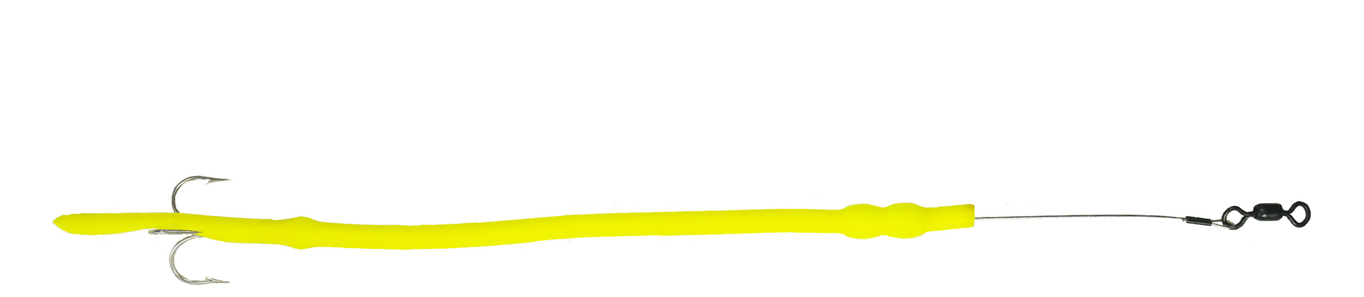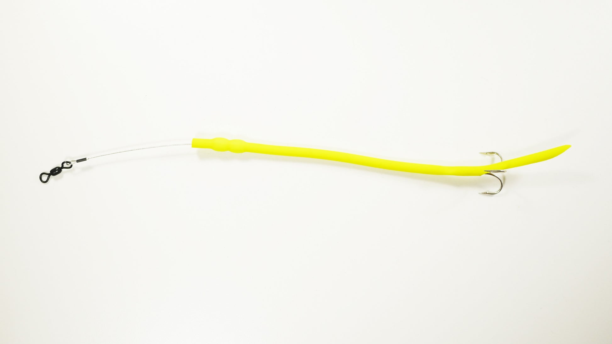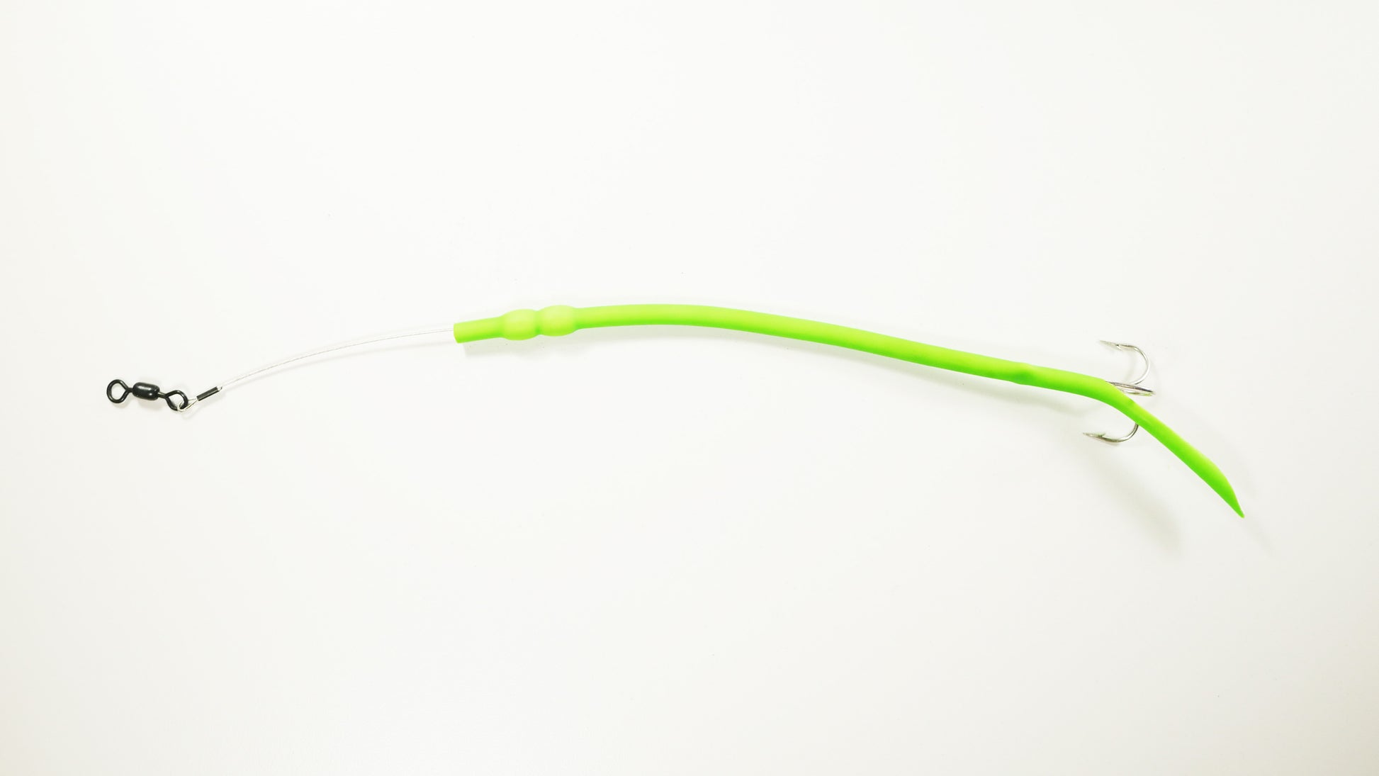 Pro Tips: Keep them curled up when not in use as the action comes from the tube being curved. Scale up leader size to 30-40 lbs as the initial bite can be pretty violent. Also lighten your drag to soften the impact. Vary retrieve from as fast as you can reel to about 3/4 speed. In deeper water, let the lure sink a bit before retrieve.