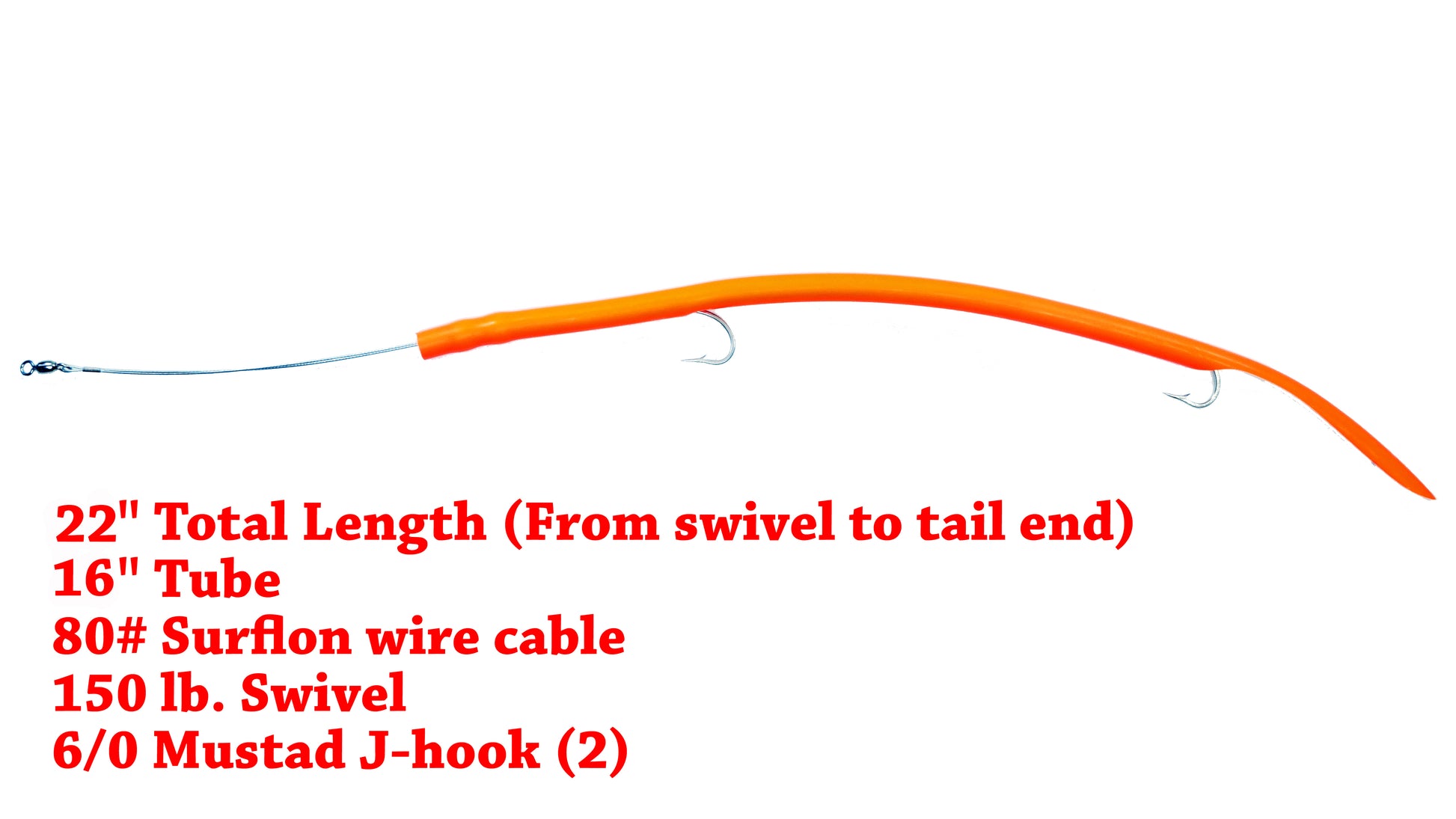 ORANGE CLASSIC CUDA TUBES (DOUBLE) J-HOOK. 22" total length, 7/16" diameter 16" long tube, 80 lb coated wire, and DUAL 6/0 J-hook. Perfect for use with a Medium to Medium-Heavy weight rod for plenty of rod bending action. Mustad Duratin J-hooks (2).
