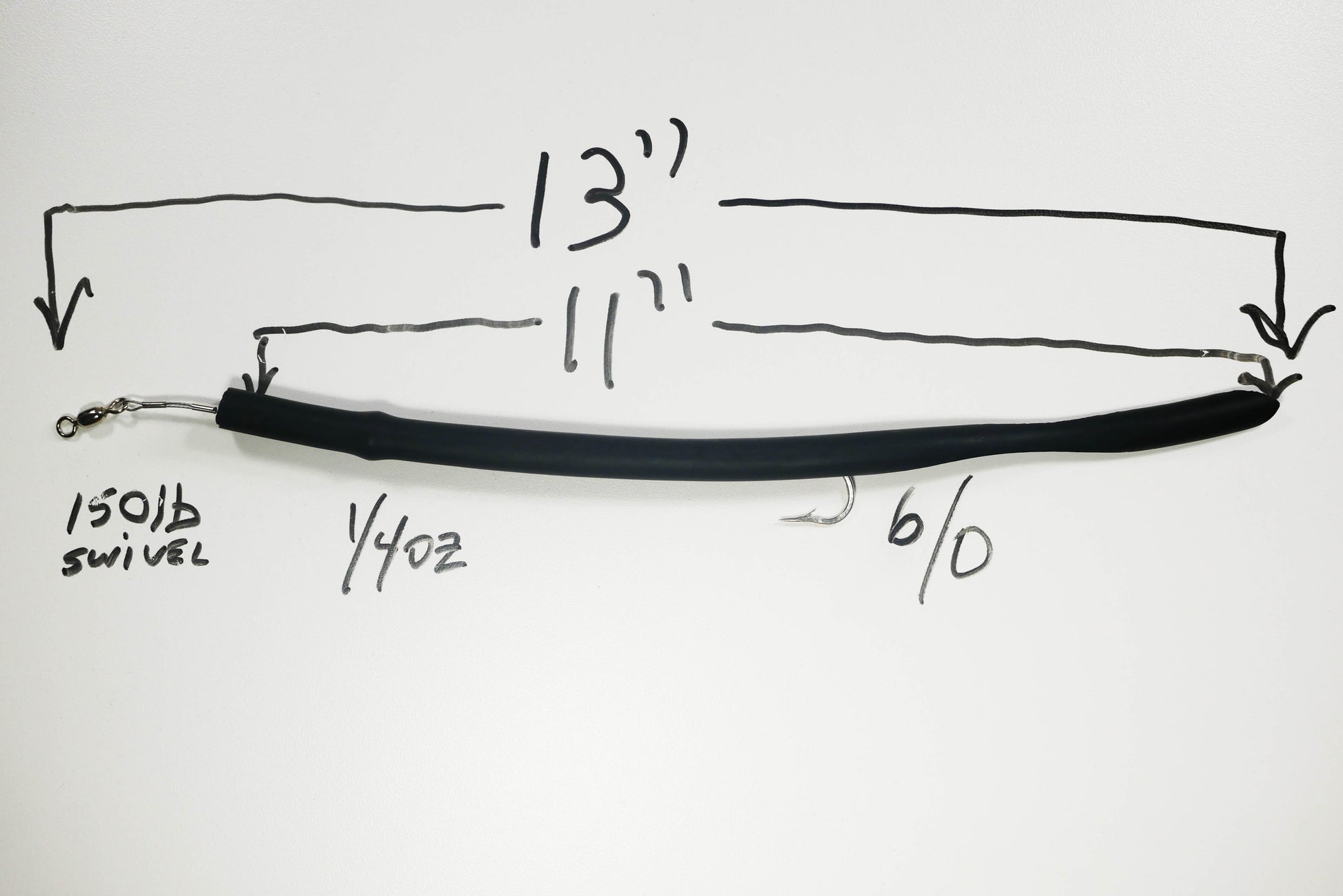 BLACK. Stubby Classic Cuda Tubes (11") are the smaller version of the Original Cuda Tube. 11" total length, 8" tube, 7/16" diameter, 80 lb coated wire, 150 lb swivel, and 6/0 Mustad Duratin J-hook. Perfect for use with a Light to Medium- Light weight rod for plenty of rod bending action.
